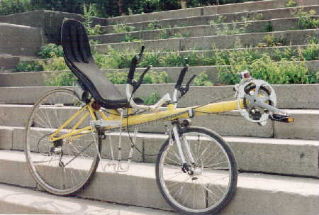| Unten ist mein Liegefahrrad,(1995) ein Kurzlieger der Ideenschmiede HP-Velotechnik in Kriftel